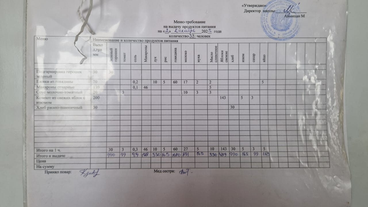 Күнделікті мәзір